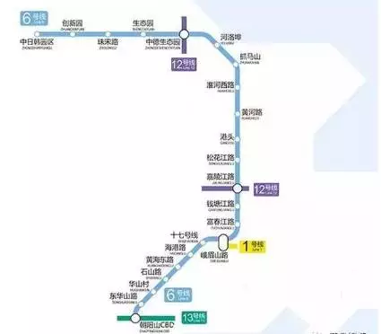 朝阳山CBD——换乘13号线到:泰山路、黄海东路