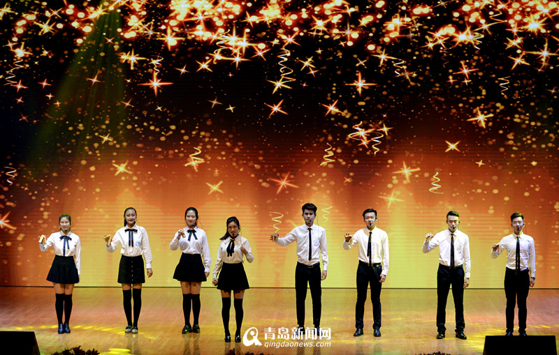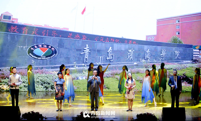 节日的滨海学院,格外喜庆热烈。校园里,气势恢宏的双龙戏珠大红充气拱门,一条条鲜红的校庆竖幅从教学楼、宿舍楼等建筑上方轻盈垂下,喜庆、隆重的祝福语温暖着整个校园。作为校庆主会场的学校礼堂,愈加辉煌热烈:主席台上方是“青岛滨海学院建校二十周五年庆祝大会”的红色横幅,两边是悬垂的大红主题对联,左边是“以兴教育才为己任,自立自强奠基滨海伟业”,右边是“以利民报国为目的,开拓勤奋创建百年名校”;主席台上,陈列着丛簇的鲜花,洁白、翠绿和火红的装点使主席台透出蓬勃生机;主席台对面礼堂二楼的护栏上,横挂着巨型横幅:“建青岛滨大,立民办清华,成百年名校”十五个大字清晰醒目,彰显着滨海人众志成城共创伟业的决心和志向。整个礼堂,以红色为主打色调,在礼堂天顶五彩华灯的照耀下,洋溢着喜庆、隆重和热烈的气氛。