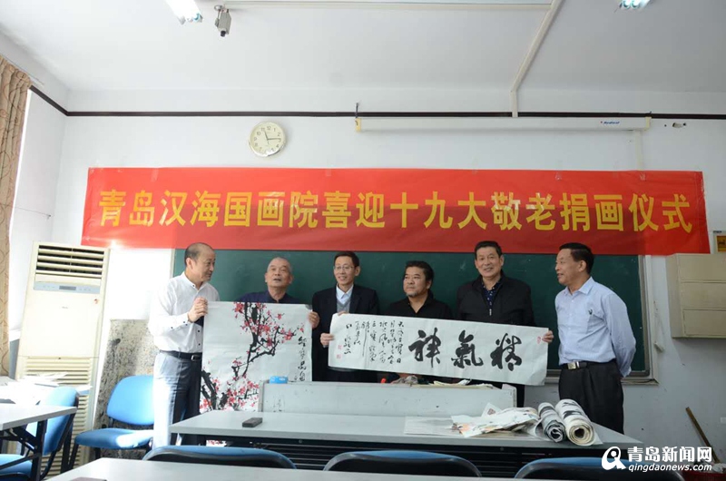 与此同时,在活动现场,青岛汉海国画院院长杨海君代表画院把这次活动中画师创作的几十作品全部捐赠给青岛福山老年公寓,以此表达汉海国画院无偿服务社会的核心价值。