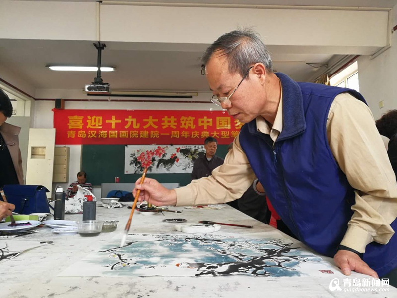 青岛新闻网10月16日讯(记者 徐恺)以“喜迎十九大共筑中国梦”为主题的大型笔会日前在青岛汉海国画院隆重举行,画院30余名画师现场挥毫泼墨,以此表达对党的十九大即将召开的喜悦心情和对祖国建设发展美好前景的展望。