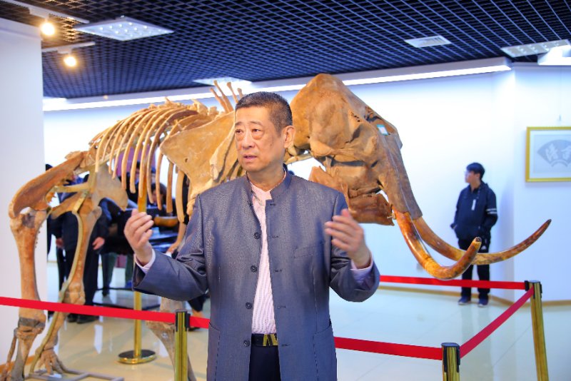 陈树先生现场为记者介绍猛犸象化石