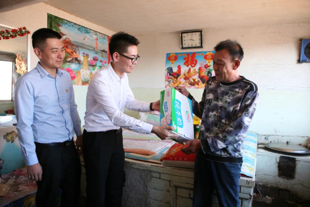 在双节前夕,伊利集团志愿者为朝号村精准扶贫户送去大米、食用油和牛奶等生活用品,志愿者们与慰问对象亲切交谈,详细地询问他们的身体状况和家庭经济来源情况,了解他们的想法和需求,其中一位受助人员激动地说:老伴去世后,自己又罹患糖尿病,儿女常年在外打工,生活遇到很多困难,感谢政府和伊利的关怀与帮助,解决了诸多困难,让我们感受到了温暖。