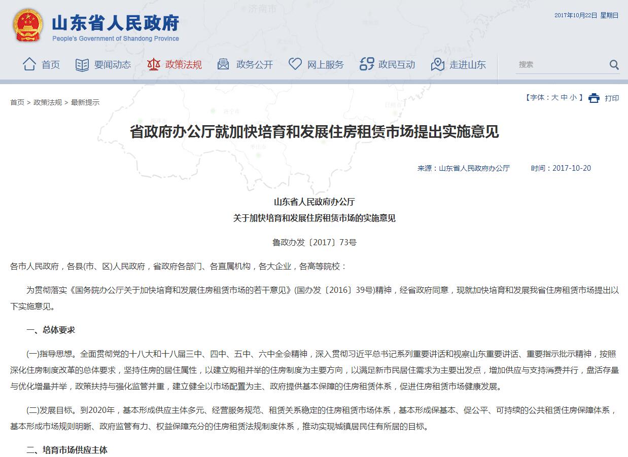 齐鲁网10月22日讯(记者杨婷婷)日前,山东省政府办公厅印发《关于加快培育和发展住房租赁市场的实施意见》(以下简称意见),提出建立健全以市场配置为主、政府提供基本保障的住房租赁体系,促进住房租赁市场健康发展。