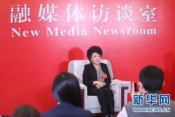 十九大新闻中心举行媒体见面会,邀请十九大代表、国务院侨务办公室主任裘援平接受媒体采访。新华网郝广鹏摄