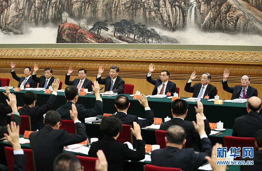10月23日,中国共产党第十九次全国代表大会主席团在北京人民大会堂举行第四次会议。习近平、李克强、张德江、俞正声、刘云山、王岐山、张高丽等出席会议。新华社记者兰红光摄