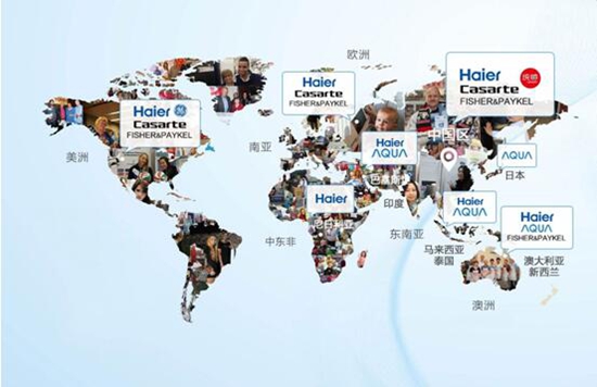 在此基础上,海尔在世界范围内积极进行品牌化布局,通过差异化的国际并购实现了海外资源的快速扩展。2017年3月,海尔发布六大家电品牌全球化战略,整合海尔、美国GE Appliances、新西兰Fisher & Paykel、卡萨帝、统帅、日本AQUA等品牌。至此,海尔在全球共拥有7大品牌,10大研发中心,21个工业园,66个营销中心,108家工厂,成为全球唯一拥有品牌最多、产品最全、最具国际化特质的“世界第一家电集群”。