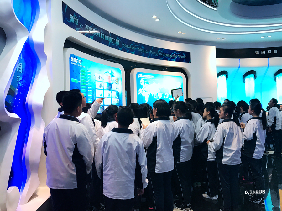 黄岛四中的学生正在参观