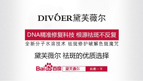 研究发现,色斑是体内多余黑色素无法正常排出体外沉淀在脸上的,法国黛芙薇尔DIVOER祛斑中心费劲周折,经过上万次试验终于研究出DNA水溶分子补给技术,从天然植物中研发而成的黛芙薇尔去斑组合,正是从抑制黄黑色素的生成和促进黑色素和老化细胞的代谢入手,不仅于作用于黑色素表面,而全面彻底的去除面部色斑。