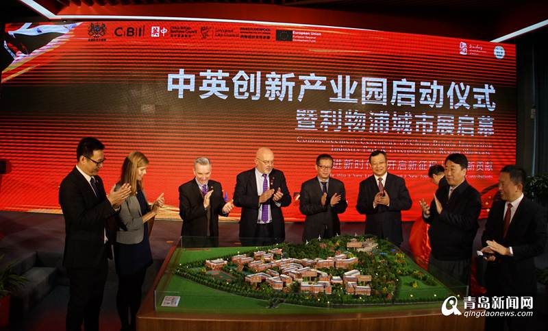 商务部驻青岛特派员孔令羽,青岛西海岸新区管委主任、区长李奉利,商务部欧洲司副司长余元堂,英国驻华大使馆公使衔参赞魏林(Mark Wareing)、英国利物浦市副市长葛睿(Gary Millar)等出席启动仪式。余元堂、魏林(Mark Wareing)、葛睿(Gary Millar)、李奉利先后致辞并为产业园总规沙盘揭幕。