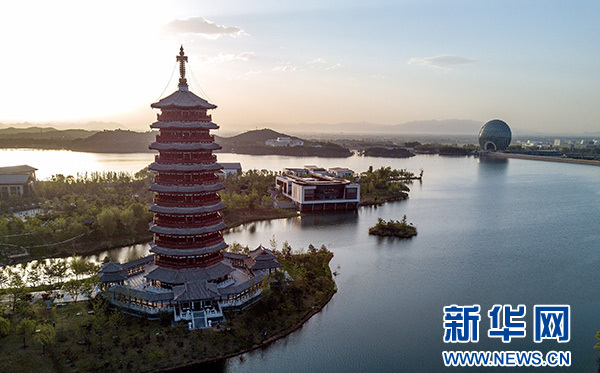 北京怀柔雁栖湖雁栖塔(2017年5月6日摄)。于2017年5月14日至15日在北京举行,怀柔雁栖湖国际会议中心是此次高峰论坛的主会场。新华社记者 李鑫 摄