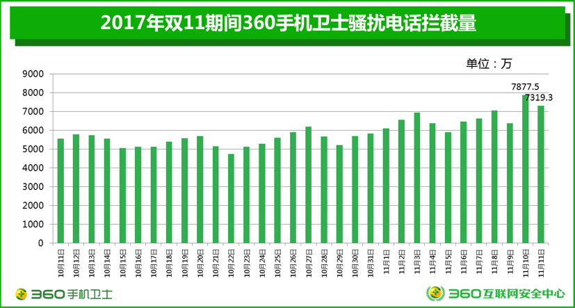 图三:2017年双11期间360手机卫士骚扰电话拦截量