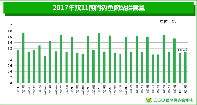 图一:2017年双11期间钓鱼网站拦截量