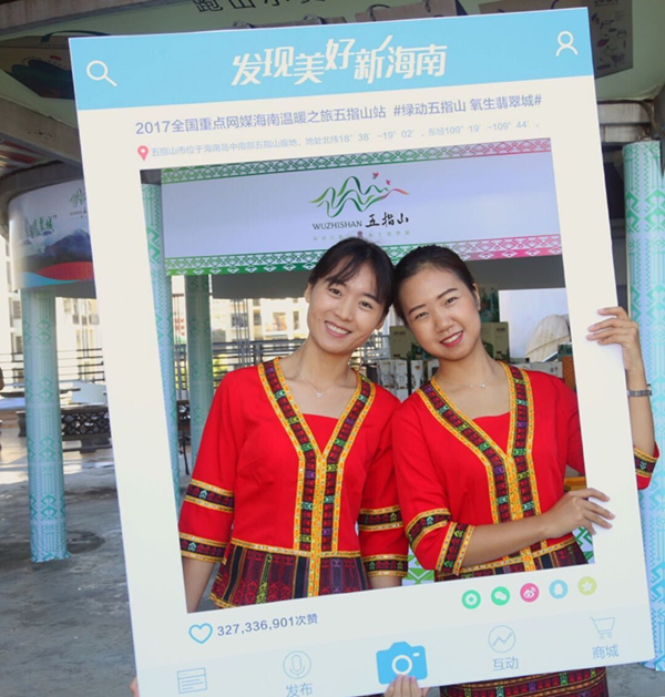 推介会最后,王楚蝶和网媒记者共同启动了2018年“三月三”邀请,盛邀全国网友2018年“三月三”相聚五指山、欢度节庆,感受黎族、苗族的文化魅力。