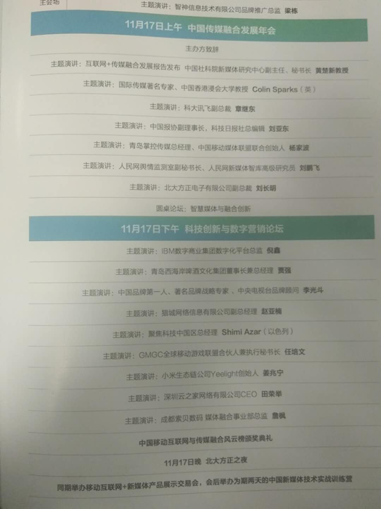 峰会现场,英国著名物理学家霍金进行了视频演讲,展望了对人工智能和人类未来的美好畅想,让与会嘉宾感受来自世界最顶尖科学家的思想魅力。参会嘉宾从科学复兴的概念、媒体融合聚焦“五个W”、消费升级驱动下的新零售等多个维度,发表了各自对新媒体和新信息技术时代有效融合的看法。这场汇集了人民日报、长城会、小米、阿里巴巴、京东等互联网界和媒体界巨头的盛会让到场的嘉宾直呼过瘾。