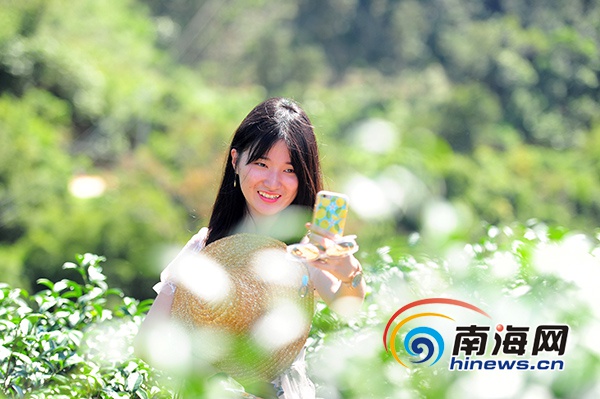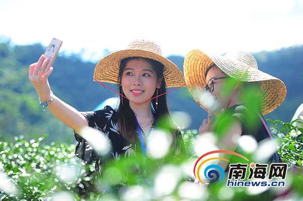 正午时分,被阳光烘得发亮的茶树正迎着阳光获取养分,大片的绿色茶园正呈现出蓬勃生长的态势。悠悠茶香四处飘扬,采茶女们一边采茶一边哼唱着茶歌的场景吸引不少网络媒体人拍照留念,那象征着五指山的绿色地标的众多茶园,正越过五指山脉,飘向中国乃至世界的其他地方。
