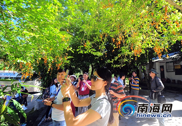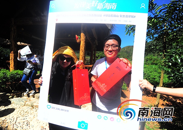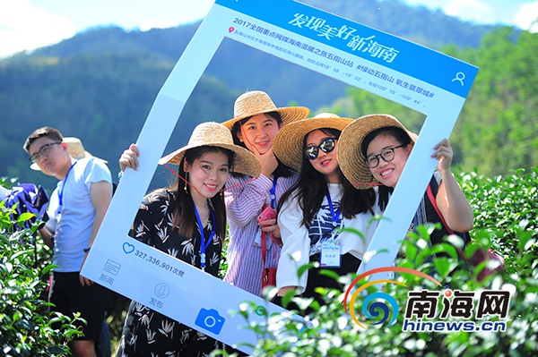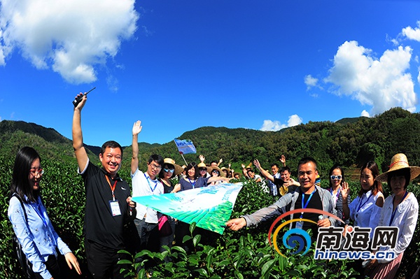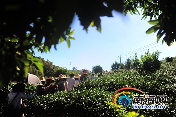 11月17日,“发现美好新海南”2017全国重点网络媒体海南温暖之旅采风团的60名网络媒体人来到五指山市最具代表性茶园之一的椰仙茶园,近距离了解这块绿色新地标的魅力。南海网记者 沙晓峰 摄