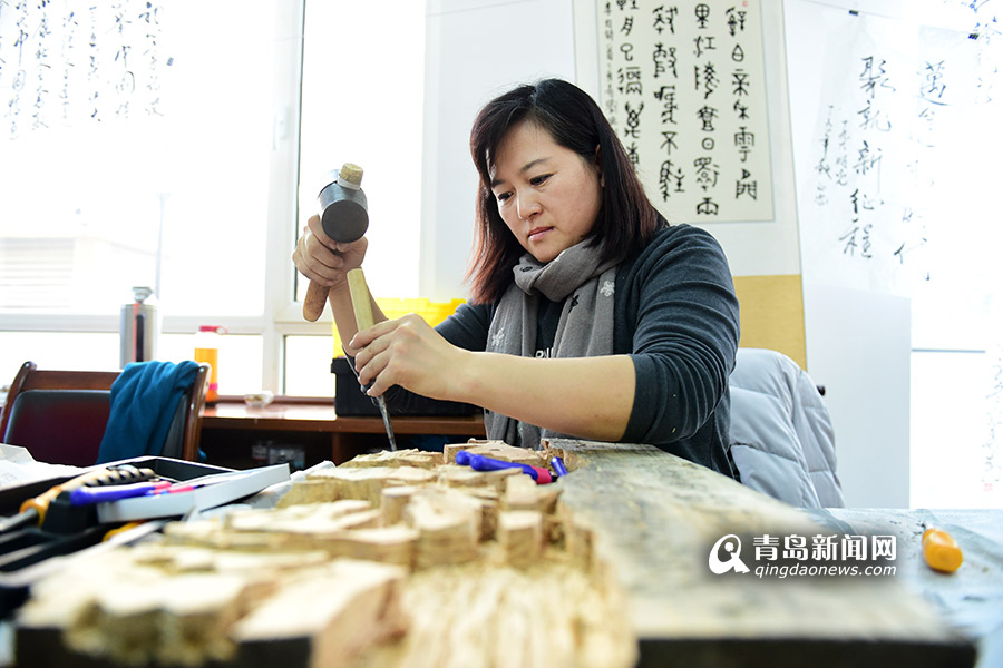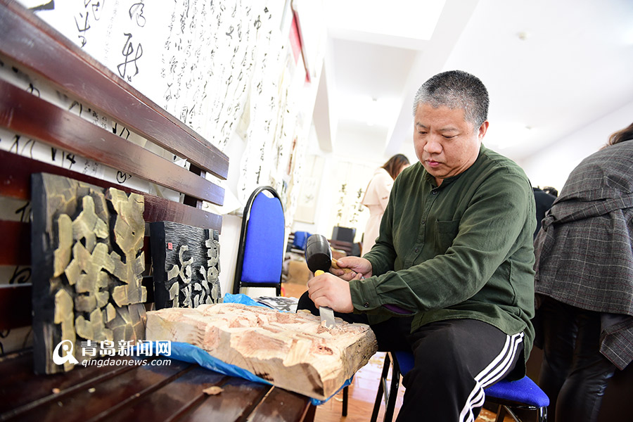 据介绍,在此次活动中艺术家们将创作60幅刻字艺术作品,全部作品将于12月23日在青岛春鸿九美术馆展览。