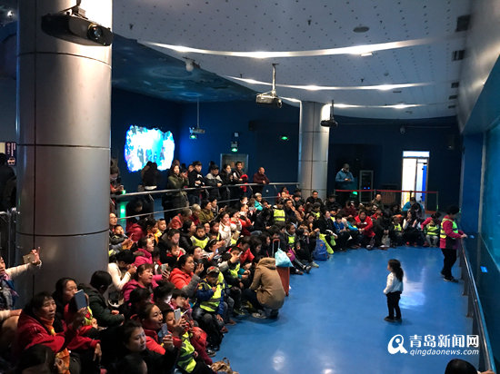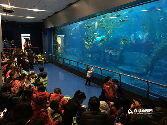 上午9点,青岛市残疾人康复职业培训中心自闭症部的孩子们在家长和老师的陪同下,亲近海洋、畅游海底世界。在讲解员的耐心讲解下,孩子们瞪大了好奇的眼睛,当看到“人鲨共舞”的精彩表演,甚至有孩子露出了久违的笑脸,家长和老师都感到很欣慰。