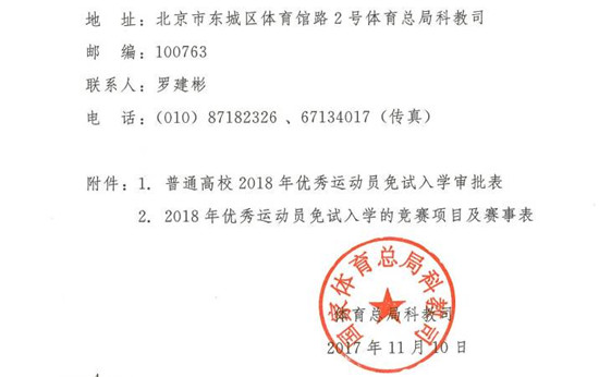 (二)申请免试入学的运动员应根据院校招生简章,自行联系拟申请就读高校,并填写《普通高校2018年优秀运动员免试入学审批表》,获得学校招生部门盖章同意;