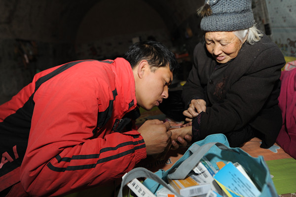 2009年,孩子到了上学的年龄。妻子费了好大劲在城里谈妥了一间门面房,准备“逼”星龙进城开诊所,同时方便照顾孩子。可贺星龙知道后坚决不同意,夫妻俩为此吵翻了天。后来,不知是谁把这件事传开了,乡亲们着急了,贺星龙一天就接到十几个挽留电话。索提村71岁的郝芳花甚至走了3公里的山路来找他。老人哭着抓住贺星龙的手说:“娃呀,你可不能走啊,要是有个头疼脑热的,谁来管咱呢?”站在一旁的妻子也抹起了眼泪。她又何尝不理解丈夫呢?村里老人多,离了谁都行,可真离不了星龙这个医生。