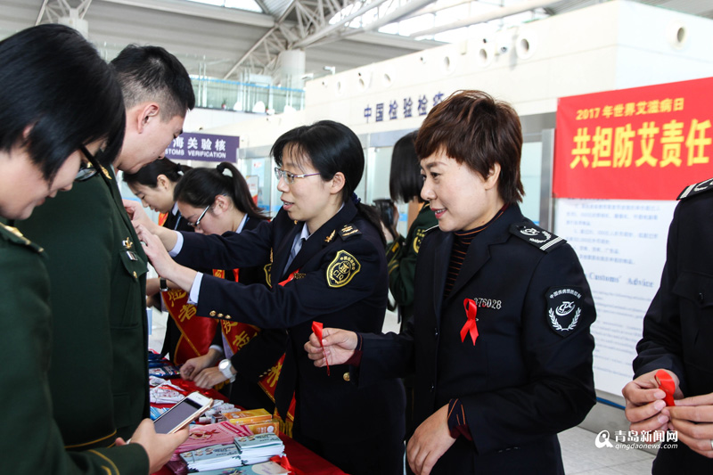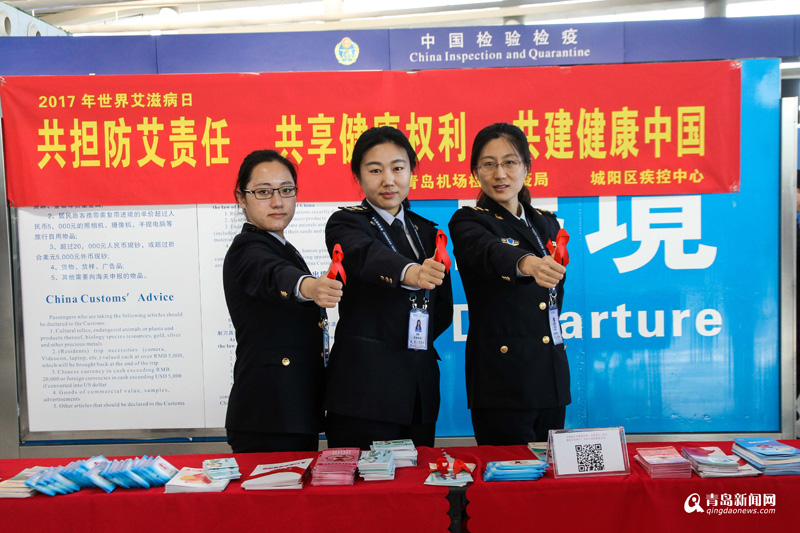 青岛新闻网12月1日讯(记者 张力伟) 今天是第30个“世界艾滋病宣传日”,连日来,山东青岛机场检验检疫局联合青岛机场边检站等口岸多部门,在口岸国门前持续开展以“共担防艾责任,共享健康权利,共建健康中国”为主题的 “世界艾滋病宣传日”宣传活动,宣传普及艾滋病预防知识,提高全社会对艾滋病防治工作的认识。