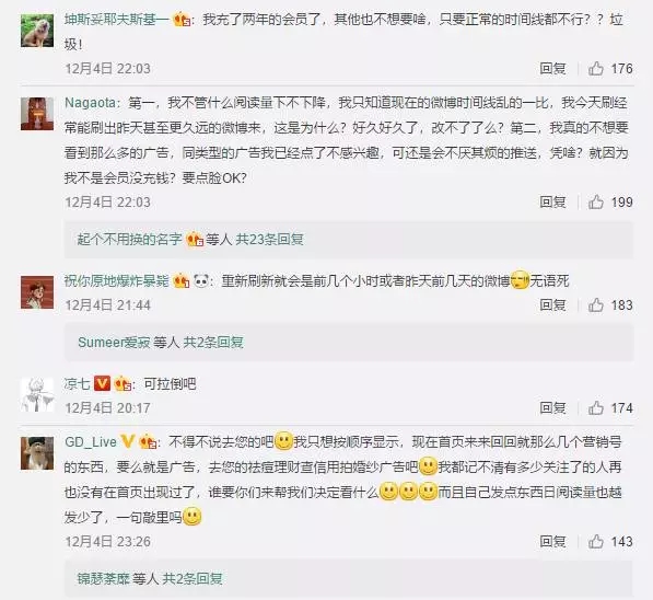 这让微博开始有些坐不住,尽管在11月7日微博发布的三季度财报上,营收和净利一路高歌,但之后的几天,大量微博用户,尤其是大V对微博改版后的吐槽,铺天盖地,即便到现在吐槽依然存在。