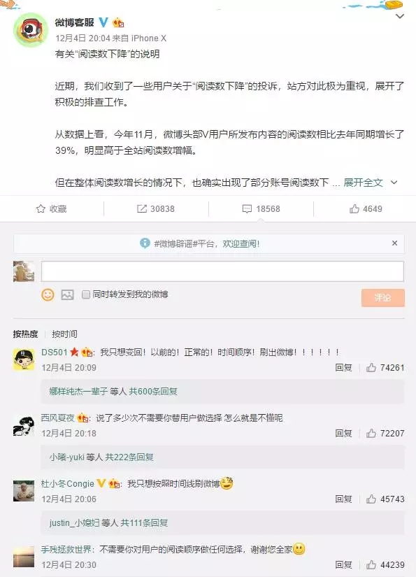 以下是新浪微博客服有关“阅读数下降”的说明: