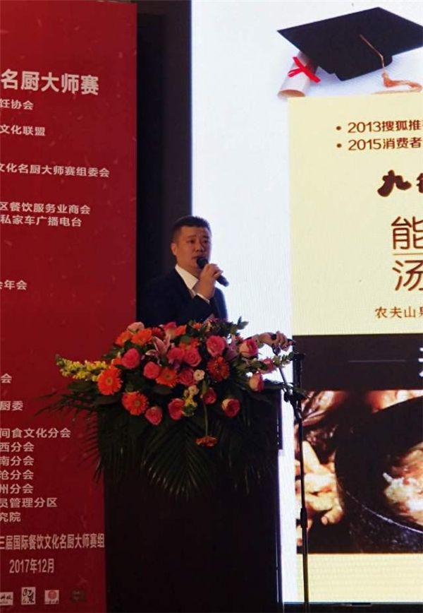 12月12日,在青岛涵碧楼度假酒店进行的“同盛源杯”国际餐饮文化名厨大师赛上,戚瑞麟用20分钟的“无爆品不成席”演讲,赢得现场大厨名厨们的阵阵掌声。