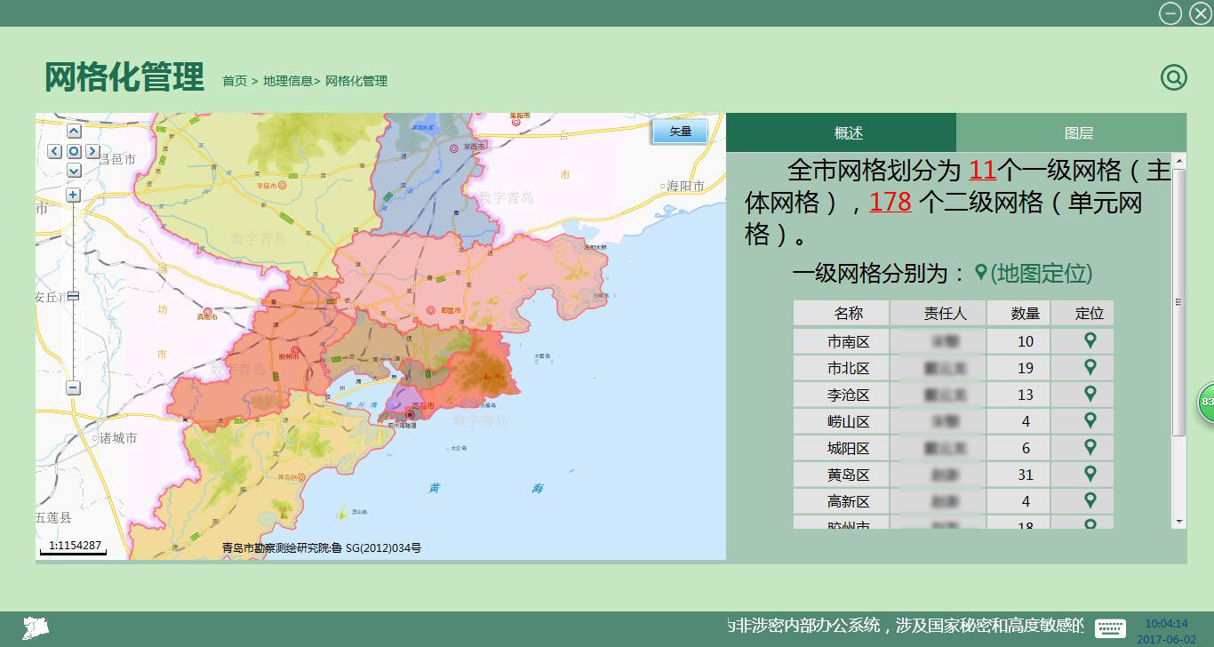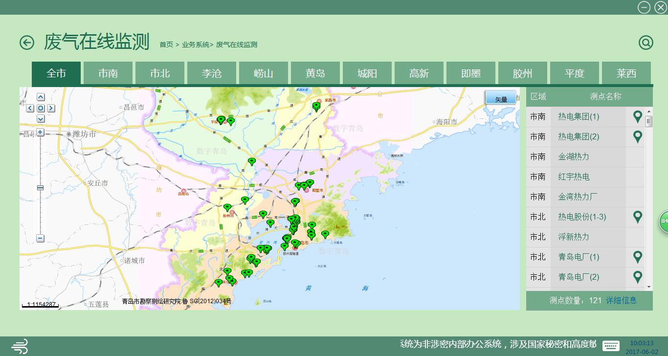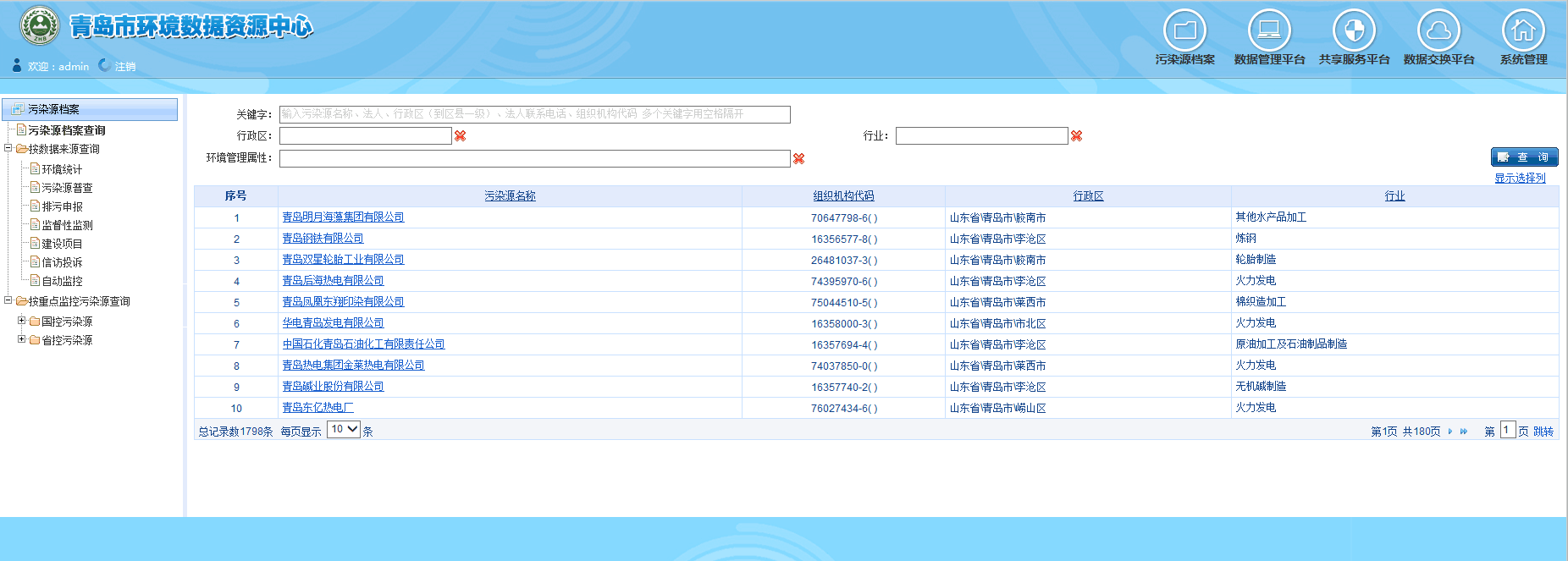 四、共享特性。项目对各类环境数据进行了统一规划、分类、集成。例如通过全市统一数据共享平台,交换并集成工商、公安、法制等部门的数据;通过青岛市重点排污单位公开平台,收集企业自主公开的环境信息;同时将与污染源相关的数据进行关联,建立污染源档案,面向政府部门提供数据共享服务,实现环保数据的关联融合和统一管理。
