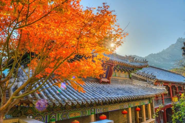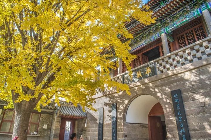 倘若赶在夏秋交替之时,大地褪去了绿色,换上秋装,满是金灿灿的黄色,或是赤焰般的红色,举起相机轻轻的按下快门,生怕打乱如诗般的画面,扰了道家的宁静。沿着华严寺步步生莲的石阶而上,华严寺便圣神般出现。