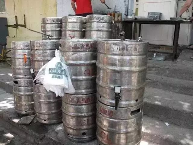到了夏天我们一般爱喝散啤,顾名思义就是散装啤酒的,大金属桶了,也是青岛啤酒出的,面向广大烧烤摊群众的,特别新鲜,基本上啤酒当天出厂当天售,一桶四十斤。