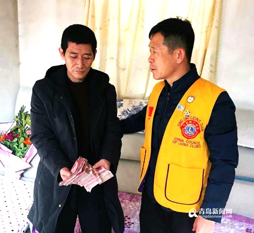 得知这个消息后,2017年12月18日,即墨狮子会一分区主席金延顺、秘书长贾立军、副主席修仕青、亲情关爱委员会主席高玉超,与和志服务队创队队长陈永进、和志服务队当届队长林建军,以及和志服务队狮友们一起去探望了李彩志。了解到李彩志狮兄目前遇到的困难,上有八十多岁瘫痪在床的老父亲,下有智力发育不健全的大儿子,决定伸出援手,在狮子会微信群里发起捐款,短短2天时间,狮友们慷慨解囊,到捐款截止日,共计收到来自各会的狮友们爱心款55530元。