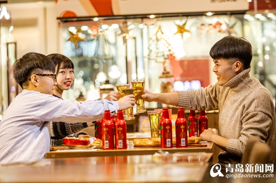 百胜餐饮集团山东公共事部经理宿昕向记者介绍:“在新年之际恰逢必胜客上新九味合一比萨,也是必胜客和青岛啤酒首次跨界合作,强强联手。”宿昕说,这次在必胜客售卖的青岛啤酒必胜装是青岛啤酒鸿运当头系列的“特别定制版”——中国人万事喜欢讨彩头,而在新的一年开始之际,更是要有“中国红”这样的色调来沉淀满满的获得感与幸福感,青岛啤酒必胜装瓶身的大红底色,再加上象征胜利的V字图案和麦香浓郁的金色酒液,恰恰契合了1月、2月中满满的节日氛围,成为新年开运第一酒,新的一年一定是鸿运必胜的一年。