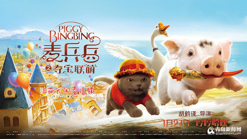 《麦兵兵之夺宝联“萌”》是国内首部动物拟人电影。影片中的三只主角:小猪麦兵兵、大鹅布飞还有猫霸恩迪哥是在贴合其本身的动物属性之上又增添了新的元素。从新曝光的“展望”版海报中我们可以看出,三只萌宠似乎都在对美好未来进行展望,但是动作中又有鲜明的性格特色。麦兵兵被包裹在粉红色的世界里,暗示麦兵兵单纯善良,展望美好的粉红世界;大鹅布飞正在引吭高歌,暗示其活泼开朗,用歌声与勇气迎接未知;猫霸恩迪哥还是维持猫这个动物本身的高冷、傲娇,但是对未来的展望中眼神又坚定不已,让我们看到了它内心的柔软与坚持。这三个性格迥异的小“勇士”聚集在一起,各有各的萌点,它们之间会碰撞出什么样的火花呢?