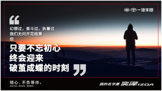 生活总会遇到许多无法言表的窘境。但我们坚信,美好的事情即将发生。就像奕泽IZOA所寓意的那样,行随心动,和奕泽IZOA一起砥砺前行,追求幸福和年轻向上的力量。因为,倾心,终将不负等待!