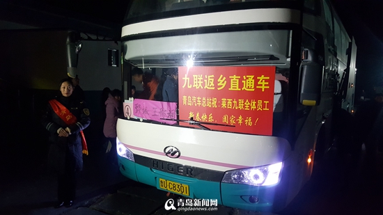 青岛新闻网2月11日讯(记者 于泓 通讯员 李男)除夕近在咫尺,对于仍在工厂流水线上工作的外来务工人员说,回家与亲人团聚是头等大事。然而因为放假晚以及不熟悉网络购票,让不少人的回家之路多了些许坎坷。为了保证他们能够及时返乡,2月11日,交运集团青岛汽车总站的9辆“情满旅途温暖到家”返乡直通车驶进了位于莱西市九联集团,在鞭炮声中将472名满载年货和喜悦的工人们送上返乡的归途。