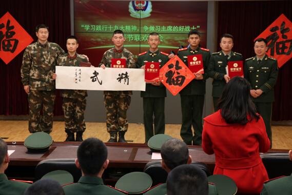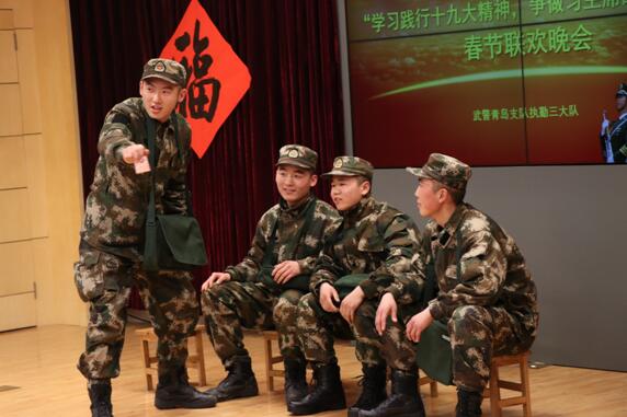 青岛新闻网2月14日讯 (通讯员 曾海彬)“新思想领航新使命开创新局面,学训词强武砺精兵备战谋打赢”,在全军上下深入学习贯彻落实党的十九大精神,武警官兵学习践行习主席授旗训词精神之际,为丰富常年奋斗在执勤一线基层官兵的文化生活,品尝“文化盛宴”。在新春佳节到来之际,武警青岛支队执勤三大队官兵自编自演,精心组织,隆重举办了“学习践行十九大精神,争做习主席的好战士”春节联欢晚会,本次新年文艺演出突出了群众性、参与性、娱乐性,主题鲜明,形式新颖,向全大队官兵送去新春佳节的亲切问候,给官兵送来了欢声笑语。