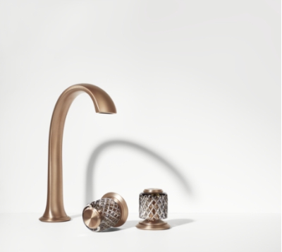 在这现代与经典交织的情境中,KALLISTA的首席设计师即Script系列的设计师Bill Mckeone,将产品背后意蕴丰富的故事和巅峰工艺向在场来宾娓娓道来:与法国皇家御用水晶品牌Saint-Louis合作定制的圣路易水晶装饰龙头,标志着水晶制造工艺的最高象征;精致的珐琅工艺让人不禁回想起19世纪珐琅和景泰蓝珠宝大放异彩的维多利亚时代;全新推出的胭脂铜饰面,也提供了更多优雅奢华的选择。将经典与现代设计巧妙结合,亦为当代家居增添了一份高贵优雅之感。