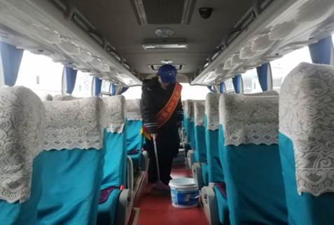 一大早,志愿者们准时来到青岛长途汽车站集合,大家按既定方案,分头行动。有的帮助车辆进行卫生清理,擦玻璃、收拾前台、整理车厢卫生,给旅客一个温馨舒适的乘车环境。