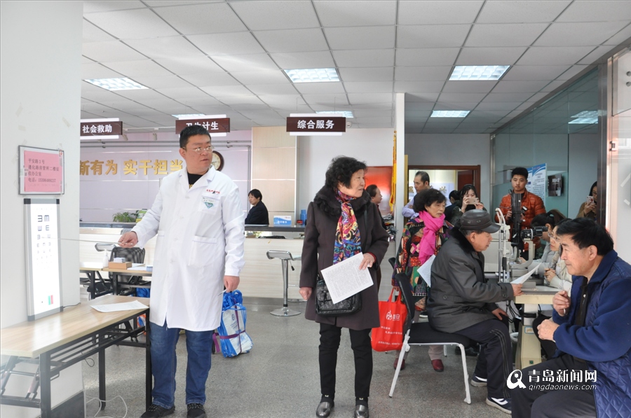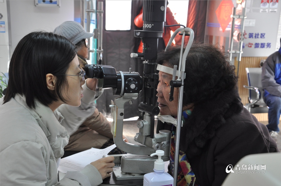 青岛眼科医院志愿者两小时共为60位左右55岁以上老人检查眼睛