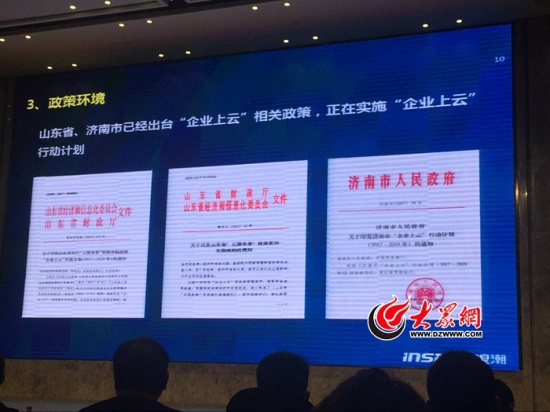 论坛现场,山东省经信委推进处调研员张旸介绍,云计算已经成为像水、电一样的自然资源,成为维系企业生命的重要元素,企业上云发展势在必行。