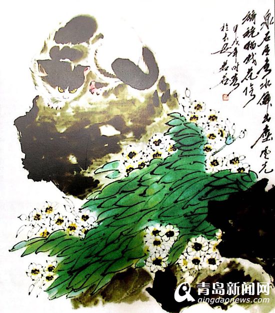 张若谷祖籍淄博,他的夫人是青岛人,这对伉俪退休后回青定居。张若谷年事虽高,但精神矍铄,每日笔耕不辍,书法绘画技艺精湛,对国学与书画艺术的领悟独具一格,积大成于一身。在张若谷看来,书法是静态的舞蹈,抽象的绘画,无声的音乐。“每个字都会说话,各有韵味;越是简单的字越难写,处理好动静、刚柔、强弱等诸多矛盾,方能呈现艺术之美。”张若谷认为,中国传统文化博大精深,其中书法和国画同源。“就拿画一块石头来说吧,它历经沧桑,风蛀雨蚀,既要画出它的形,又要表现出它沧桑和重量的质,否则就会成为一堆‘棉花套’。”张若谷表示,万物皆有灵性。他笔下的一草一木、鱼虾兰荷富有生机,画面充满张力,见微知著。即便是几棵杂草,亦是昂首向天,富有尊严。“画精每个细节,才能打磨出好作品。每个人都有自己的特质,这是模仿不来的。”