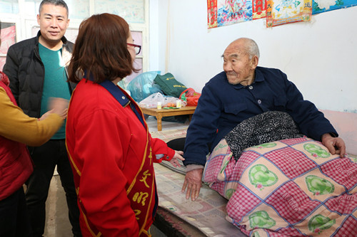记者跟随工作人员共同走访了9户老人家庭,老人们都已年迈,平均年龄达到80岁,且身体都有或多或少的病痛,但老人们灿烂的微笑,让在场所有的人都感到温暖。工作人员与老人们开心交谈、嘘寒问暖,用自己的行动让老人们感受到亲人般的温暖。