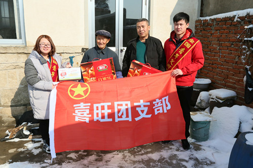 本报讯 2月8日,雪后初霁,由喜旺集团和烟台团市委共同举办的“青春扶贫 益暖齐鲁 冬日送暖行”活动来到了牟平区玉林店镇石沟村,慰问看望居住在这里生活困难的老人和残障病人,为他们送去温暖和新春的祝福。