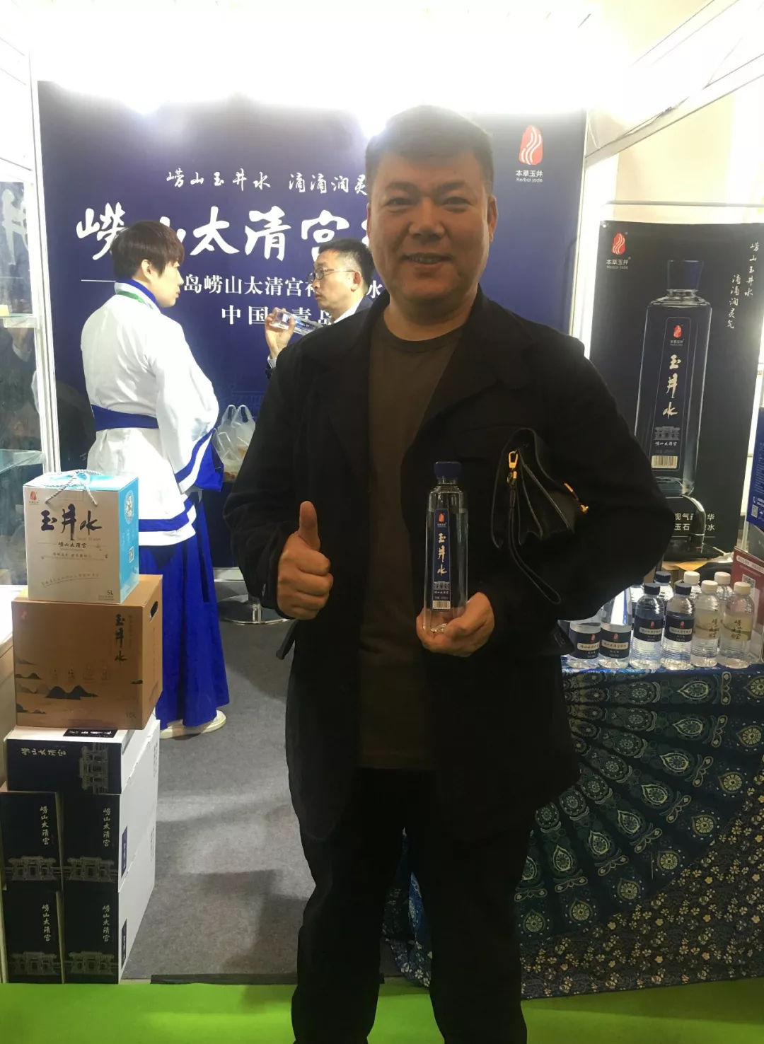 展会期间,崂山太清宫王诚法道长亲临现场,吸引了不少向道者。中国传统文化中的水崇拜、玉崇拜,以及《道德经》都成为谈论的话题。“中国最好的水就是崂山水,崂山水的精髓是太清宫的水,不仅水好,而且有文化,你们应该讲好玉井水的品牌故事,不仅让人们尤其是小孩子喝到好水,而且能得到大智慧!”曾浏览过崂山的北京市民对玉井水寄予厚望。