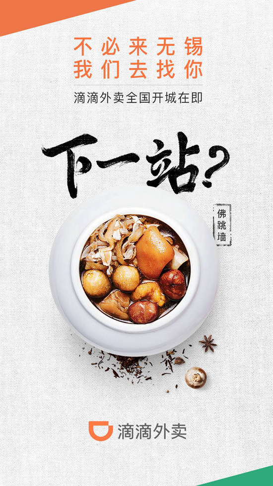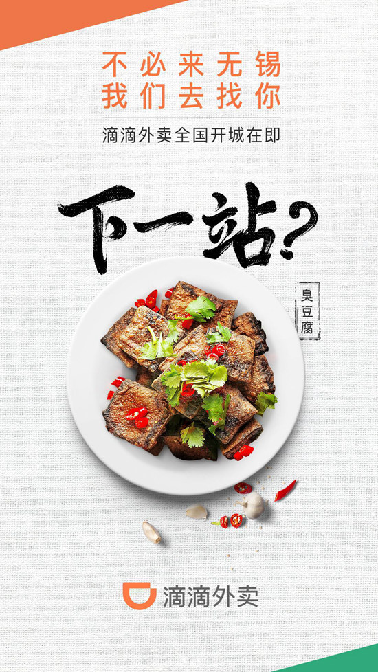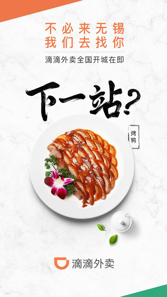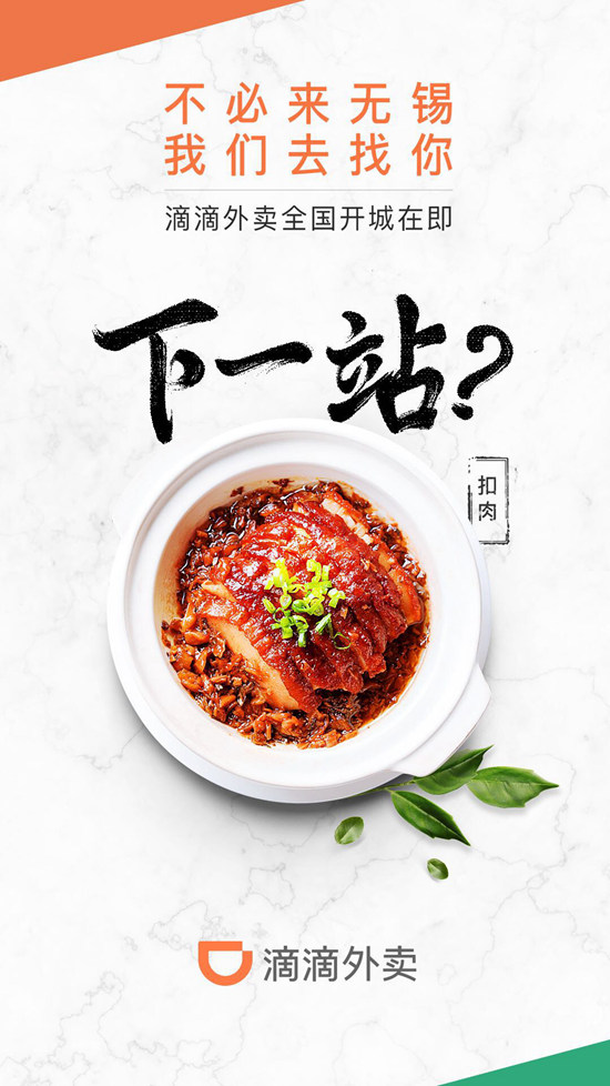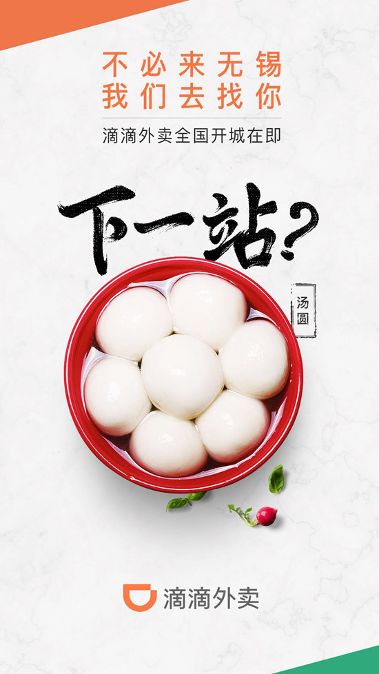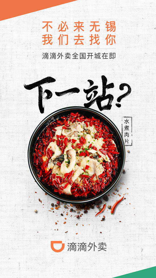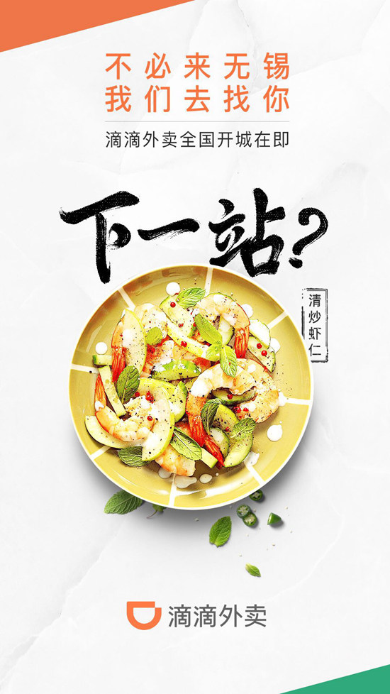 青岛新闻网4月12日讯 今天,滴滴外卖官方微博发布的9张海报在朋友圈刷屏,海报的内容颇具“悬疑风”,上面的顶部文案是“不必来无锡,我们去找你,滴滴外卖全国开城在即”,中间是大大的三个字“下一站?”,每张海报下方是一个让人垂涎欲滴的各地特色美食。