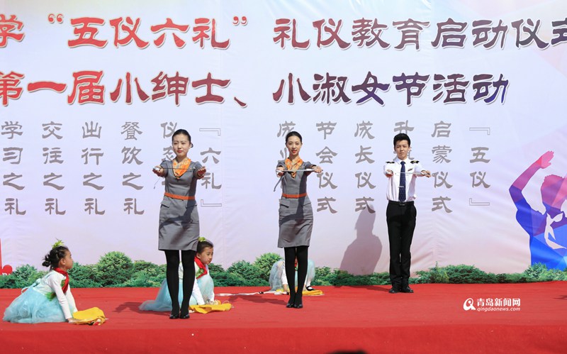 青岛新闻网4月19日讯(记者 张力伟)18日,应青岛市城阳区夏庄小学邀请,青岛航空的空姐、空少们参加了他们举办的“五仪六礼”礼仪教育启动仪式暨第一届小绅士、小淑女节活动。