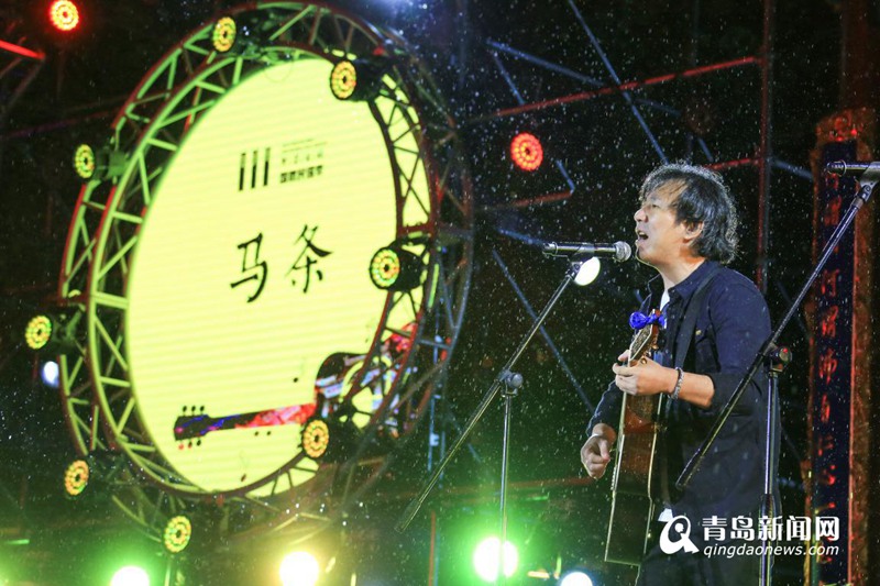 即墨古城的老朋友、资深民谣音乐人马条压轴登场,演绎了《朋友来了》、《封锁线》、《遥远的精彩》等代表作,尤其经典的是,在《塔吉汗》这首歌里,马条邀请晓月老板再次登台,用拿手的蓝调口琴加入新疆风味的演奏中,非常有新鲜感。马条现场掌控力十足,狂野的音乐魅力感染下,歌迷与马条一起跳跃、呐喊,气氛爆棚。