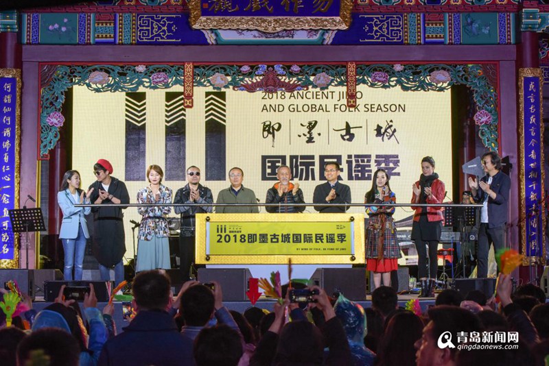 青岛新闻网4月23日讯(记者张力伟)23日晚,首届“即墨古城国际民谣季”首演在即墨古城上演。原汁原味的中式建筑、唯美动感的多媒体光影,加上众多国内外民谣音乐人加盟,完成了一场国际性、民族性、互动性俱佳的首演。现场,在《民谣在路上,即墨不寂寞》这首专属于即墨古城的民谣歌声中,殿堂级民谣音乐人陈彼得、著名音乐制作人卢中强、青岛墨风企业管理有限公司董事长杨晨光等重量级嘉宾登台,与零点乐队主唱老五、90后新生代民谣音乐人桂雨濛、当红民谣歌手牛牛刘莉旻、人文歌手赵美丽、曲艺民谣大咖晓月老板、法国歌手玛丽·克劳德、被刘欢盛赞为“音乐诗人”的马条等歌手一起,紧握推杆,开启了2018即墨古城国际民谣季。