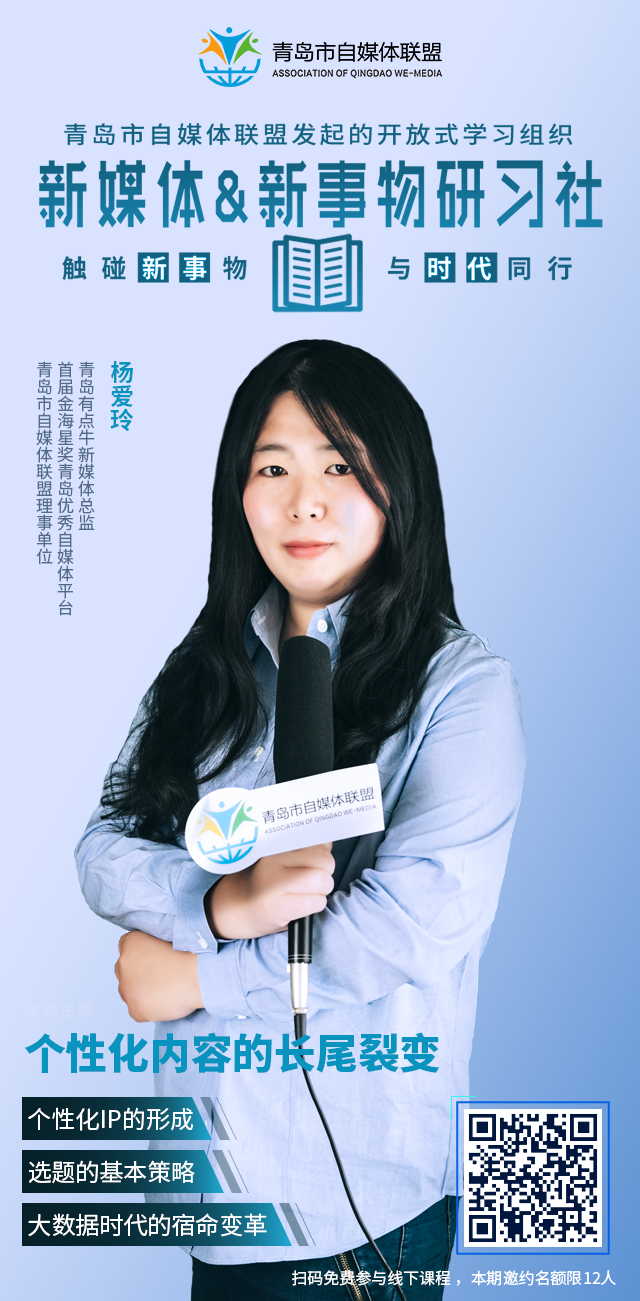 新媒体&新事物研习社由青岛市自媒体联盟发起,以“触碰新事物,与时代同行”为口号,是一个基于新媒体文化的开放式学习组织。所有对新媒体、新事物有自己独特见解的各行业优秀人士均可申请成为研习社的特邀主讲人,所有希望能在思想碰撞中不断提升自己的各界人士均可申请加入我们。
